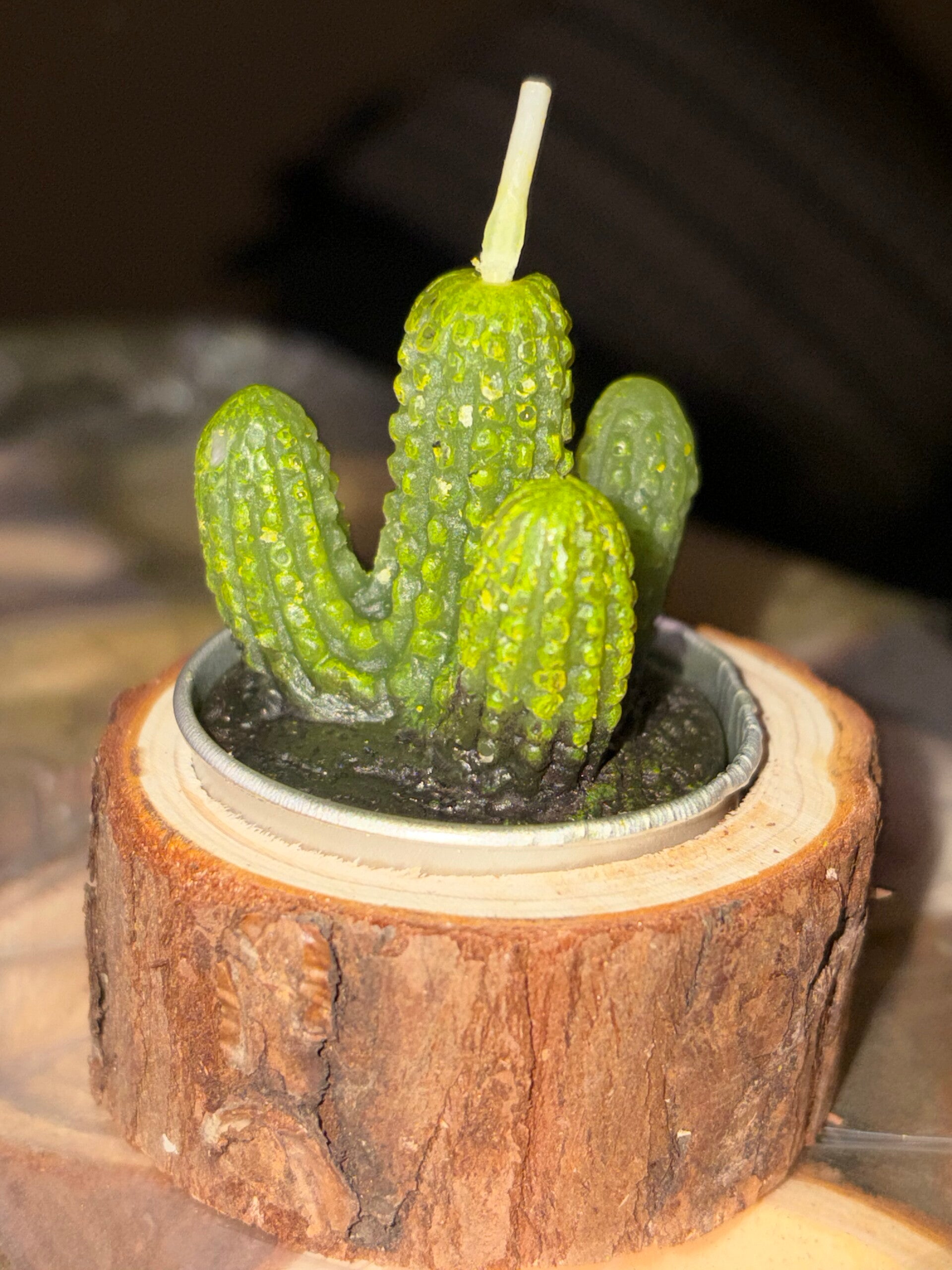 Random cactus tea lights in a wood base holder 💚